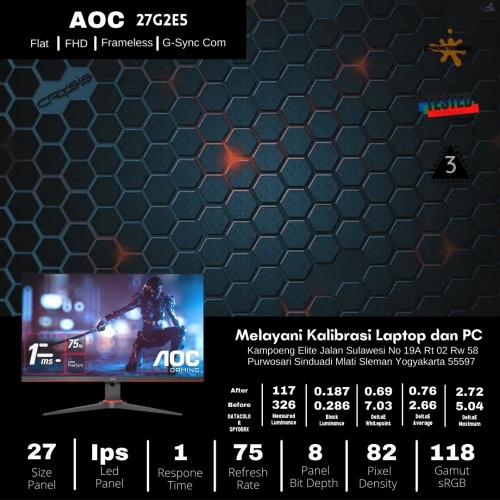 Produck ini telah kami uji akurasi warna nya dengan mengunakan Colorimeter Datacolor Spyder X, dimana hasil pengukuran pada produck ini kami sertakan pada foto produck.