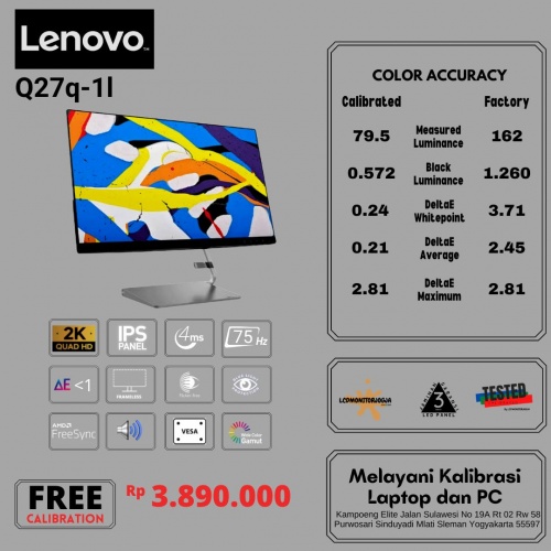 Produck ini telah kami uji akurasi warna nya dengan mengunakan Colorimeter Datacolor Spyder X, dimana hasil pengukuran pada produck ini kami sertakan pada foto produck.