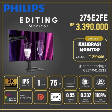 PHILIPS 275E2FE 2K/QHD BORDERLESS ERGONOMIC