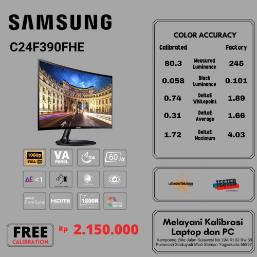 Kelengkungan layar 1800R: kelengkungan yang lebih besar dari layar 1800R memungkinkan mata Anda untuk melacak dengan lancar diseluruh tampilan dengan mempertahankan jarak pandang konstan. Dalam uji klinis yang dilakukan oleh Seoul National University Hospital Department of Ophthalmology, ini terbukti mengurangi ketegangan mata pada pengguna dibandingkan dengan melihat monitor datar.